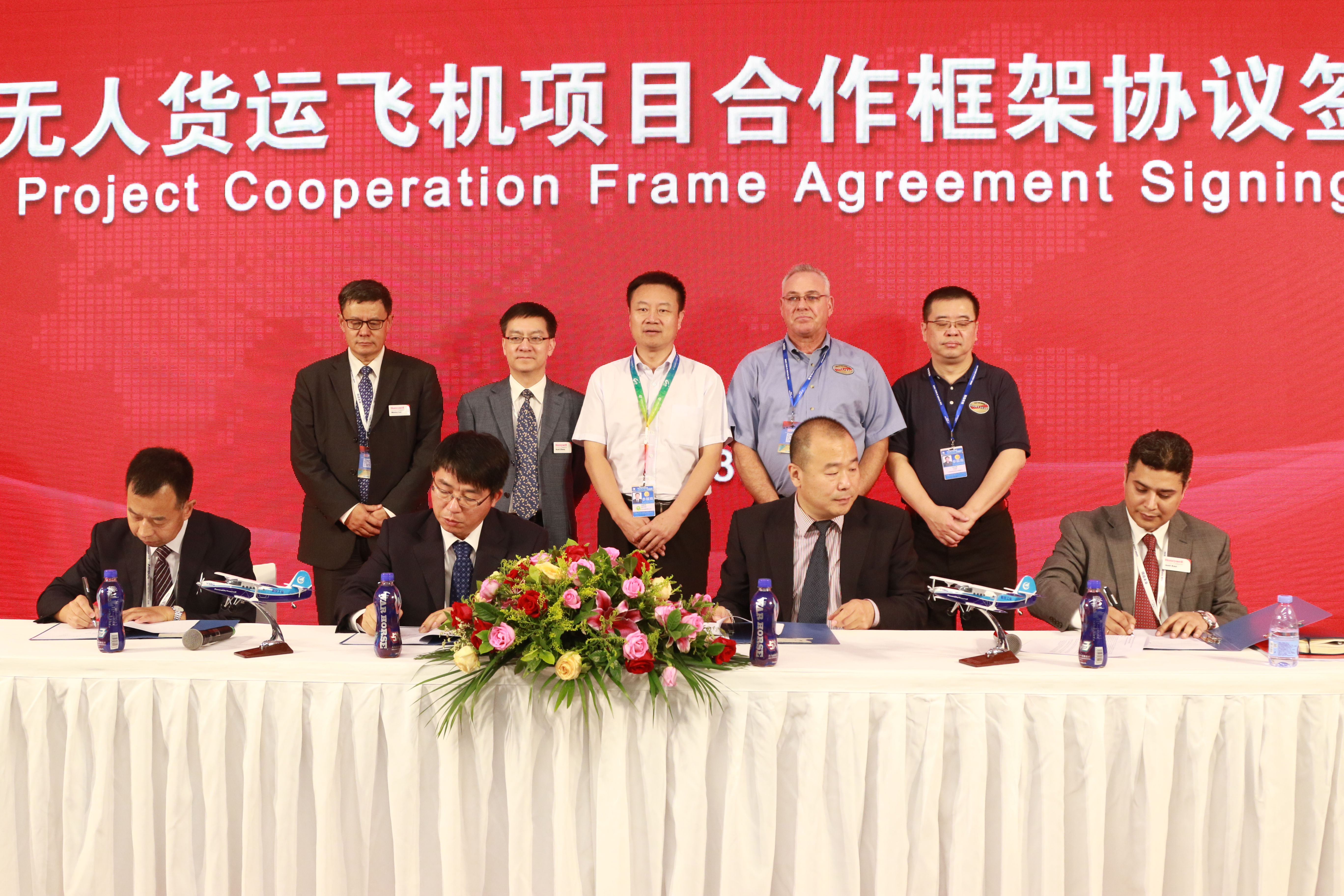 11月7日,珠海航展期間,航空工業(yè)通飛華北公司總經(jīng)理崔章棟、霍尼韋爾航空航天亞太區(qū)公務(wù)與通用航空業(yè)務(wù)總負責人Amit Kaul、威凱通公司董事長劉海東和航空工業(yè)自控所所長宋科璞共同簽署了Y5B渦槳無人貨運飛機開發(fā)合作框架協(xié)議。